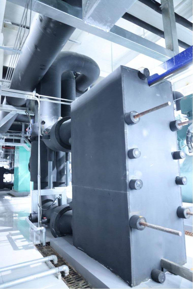 为了知足差别冷用户的用冷需求,,,实现多能互补的新型供冷模式,,,上庄热电在三期制冷的建设历程中,,,原电冷机供冷系统同步建设新建两套自然冷却板换。。。当情形温度低于5.5C时,,,通过自然冷却板换从外部低温情形中换冷,,,作废了古板电冷机的供冷运行中电耗,,,同比可镌汰电耗153万度,,,可节约标准煤 18.8 万吨。。。